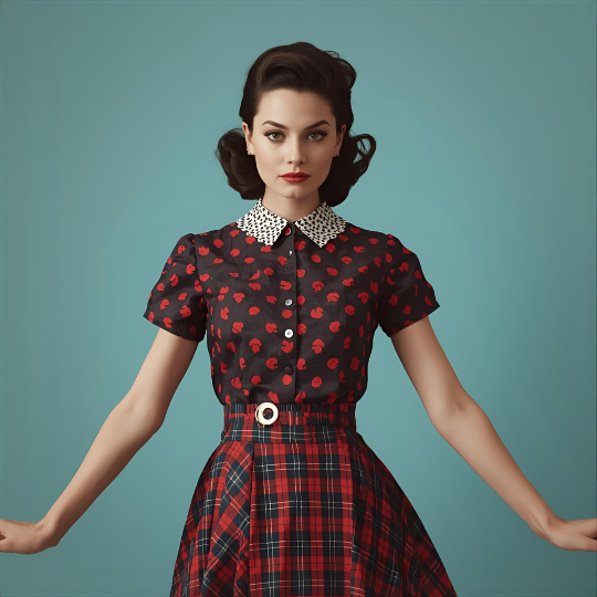 Second, the pencil skirt look – slim, sleek, and sophisticated. This was for women who wanted something modern and chic. It said, “I’m classy, I’m confident”. Add pearls, gloves, and a cute handbag, and you’ve got classic 1950s elegance.