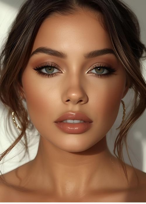 • Lips: glossy, hydrated, and natural. Lip oils or glosses with a tint.
