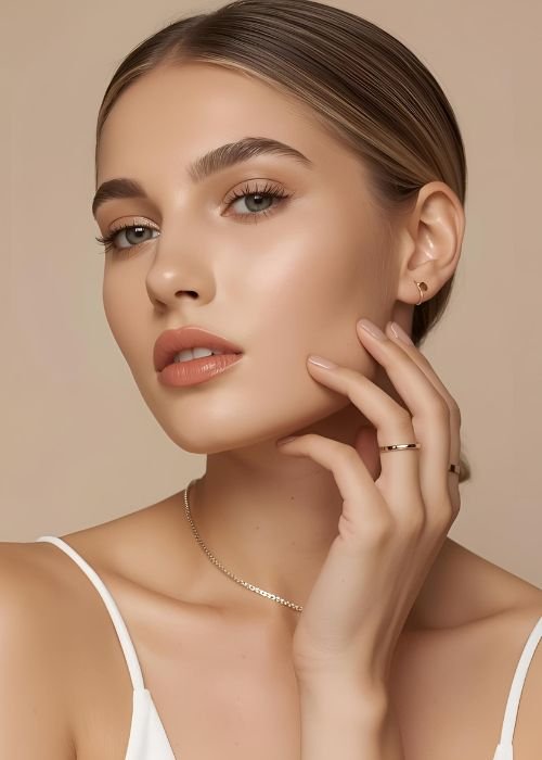 • Optional but iconic: finish with a few drops of facial oil, pressed into the high points of your face — cheekbones, temples, nose bridge — for that glossy, lived-in finish.
