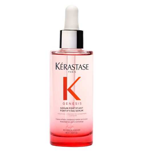 Kérastase Genesis Serum is a luxurious, lightweight treatment that strengthens hair from root to tip, reducing breakage and promoting resilience.